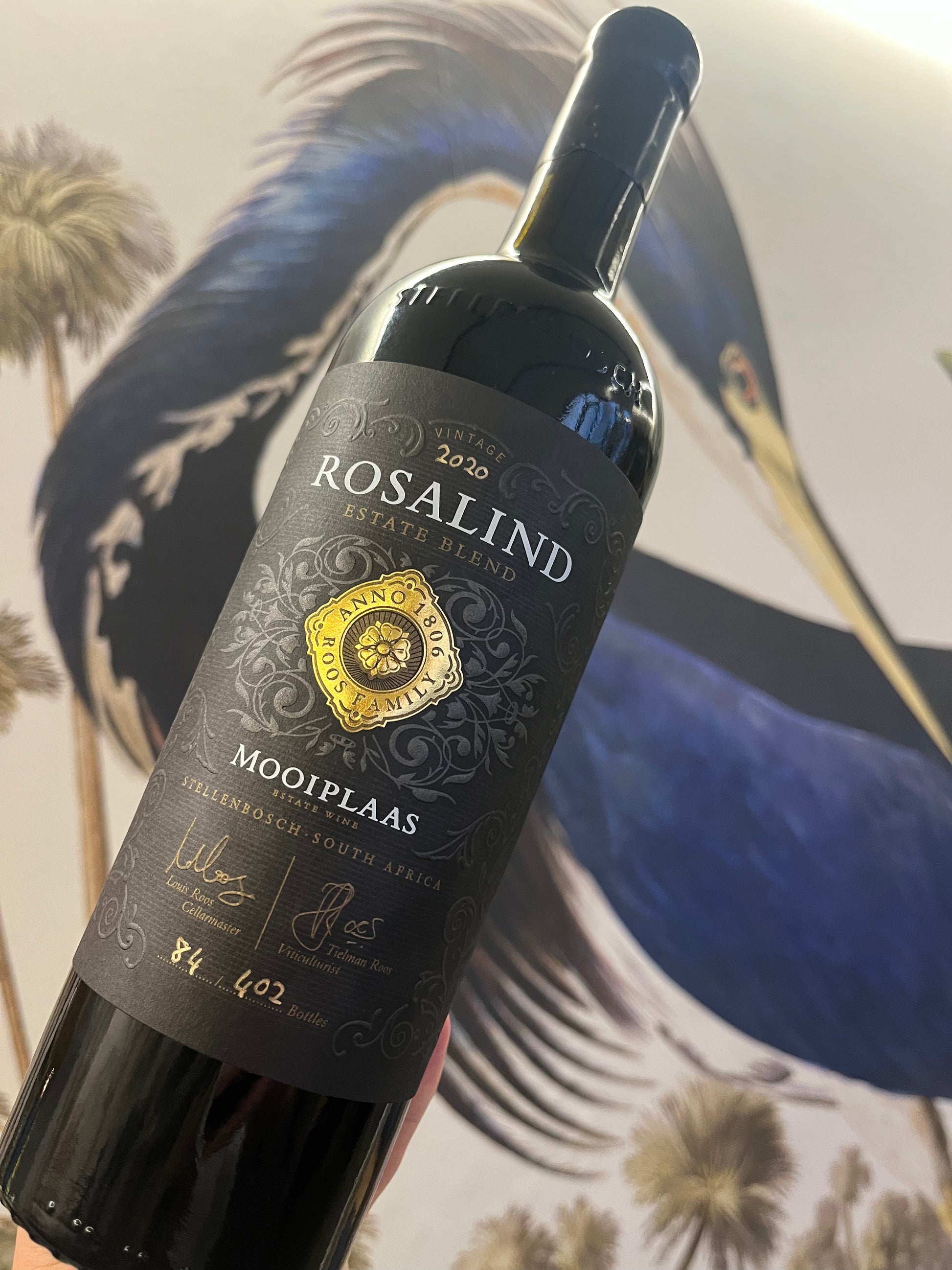 A masterful Bordeaux-style blend from Stellenbosch, this wine brings together 50% Cabernet Sauvignon, 25% Cabernet Franc, 20% Merlot and 5% Petit Verdot. Matured for 18 months in French oak, it reveals a deep ruby colour with layers of dark cherries, plums and flowery aromas, underpinned by fine oak structure and firm tannins. Elegant and powerful, Rosalind 2020 is crafted to age gracefully over decades. An ideal companion to roast lamb, venison or richly sauced meats.
